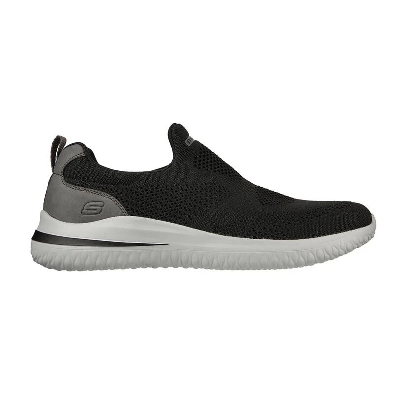 Compra en Decathlon Zapatillas Caminar Hombre SKECHERS Delson 3.0-Fairfield Negro Con un diseño exterior textil de la mejor calidad, estas zapatillas cuentan con una plantilla de Memory Foam acolchada y amoldable al pie, buena sujeción en el empeine y suela de goma antideslizante.