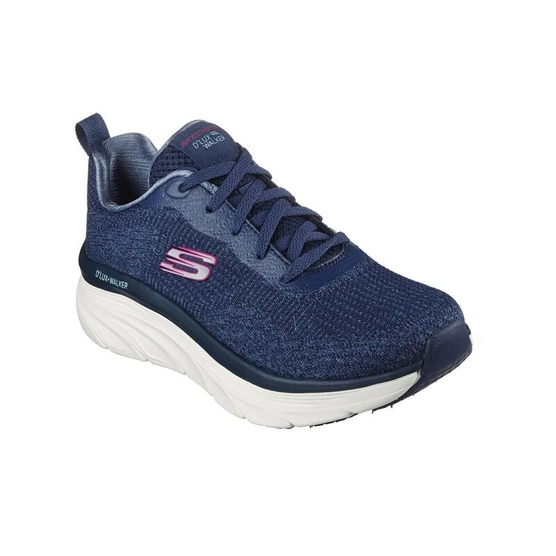 Compra en Decathlon Zapatillas Caminar Mujer SKECHERS D’Lux Walker Azul Marino Con un diseño exterior textil de la mejor calidad, estas zapatillas cuentan con una plantilla de Memory Foam acolchada y amoldable al pie, buena sujeción en el empeine y suela de goma antideslizante.