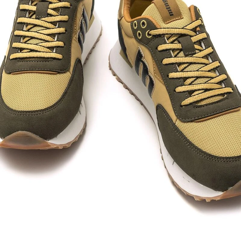 Compra en Decathlon Zapatillas de caminar para hombre mtng golden en color marron Zapatilla deportiva Joggo Golden mtng para caballero. Diseñadas de color mostaza, destacan por sus paneles en verde, azul y dorado. Logo de la marca en el lateral, nombre en la lengüeta y la trasera..