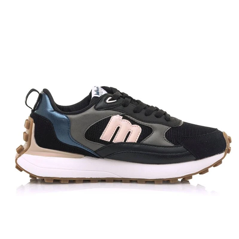 Compra en Decathlon Zapatillas de caminar para mujer mtng zinc en color negro Deportiva Zinc de color negro con paneles de diferentes texturas y colores dando un toque diferente y de tendencia, tiene cierre de cordones planos y suela dentada de color caramelo que sube hasta la.